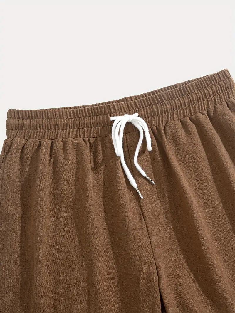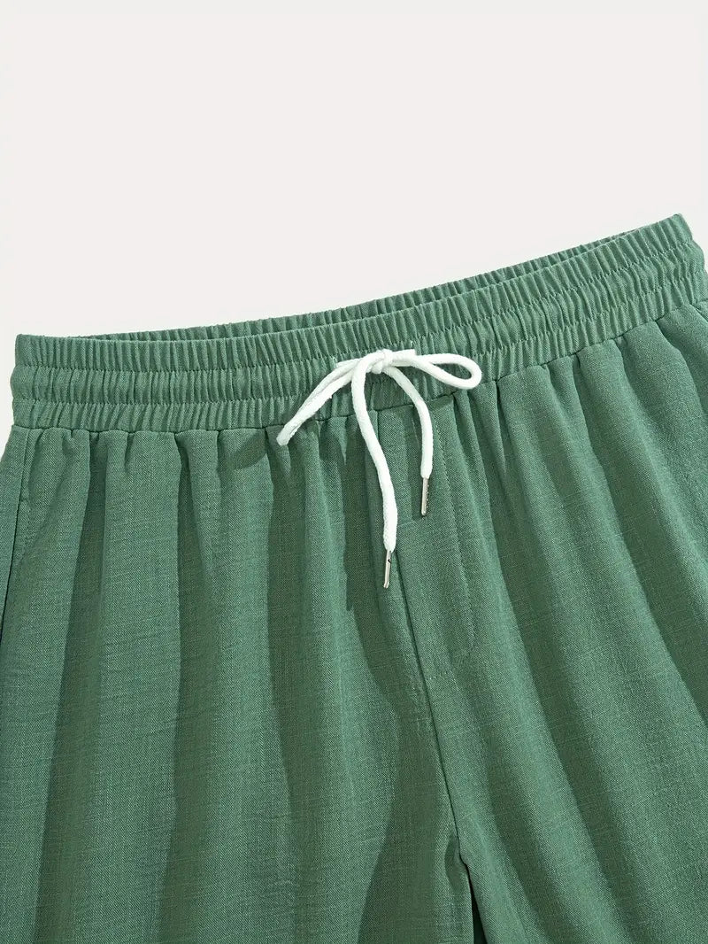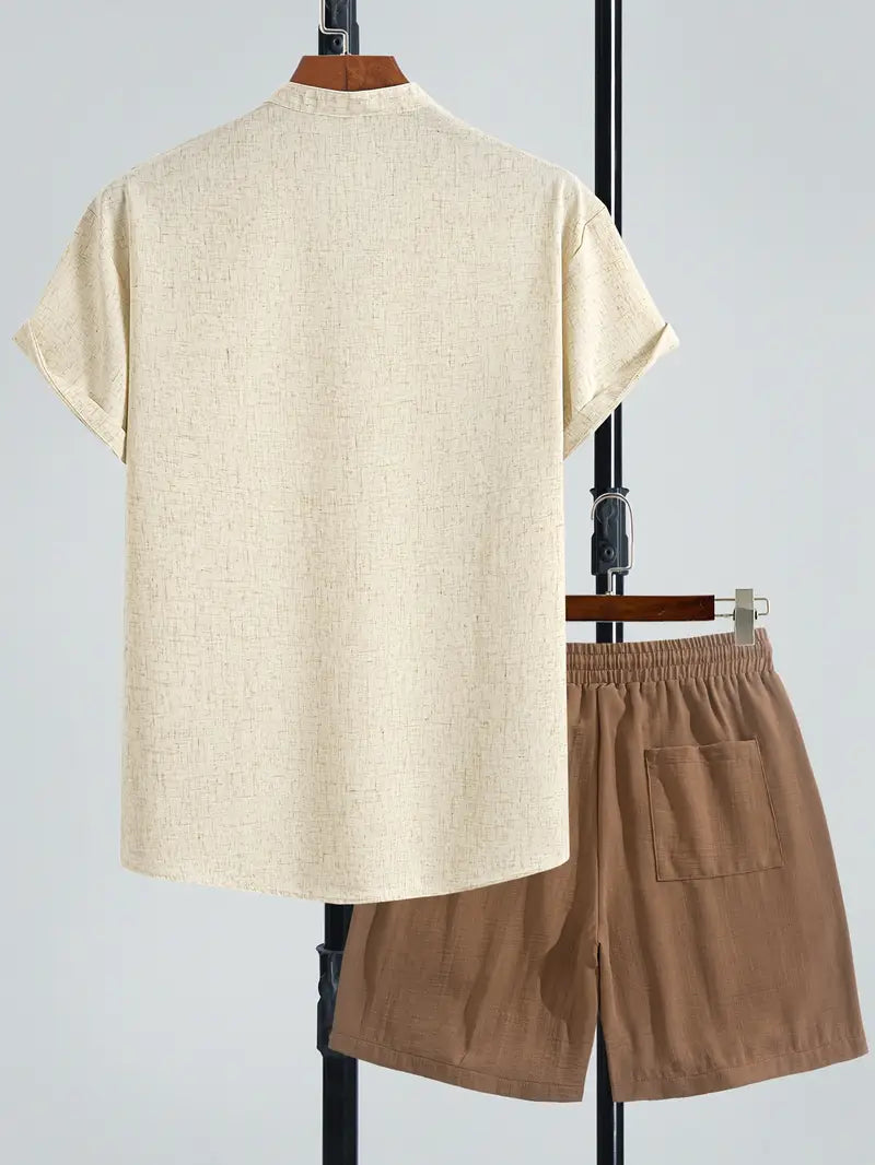 Men’s V-Neck Linen Blend 2-Piece Set